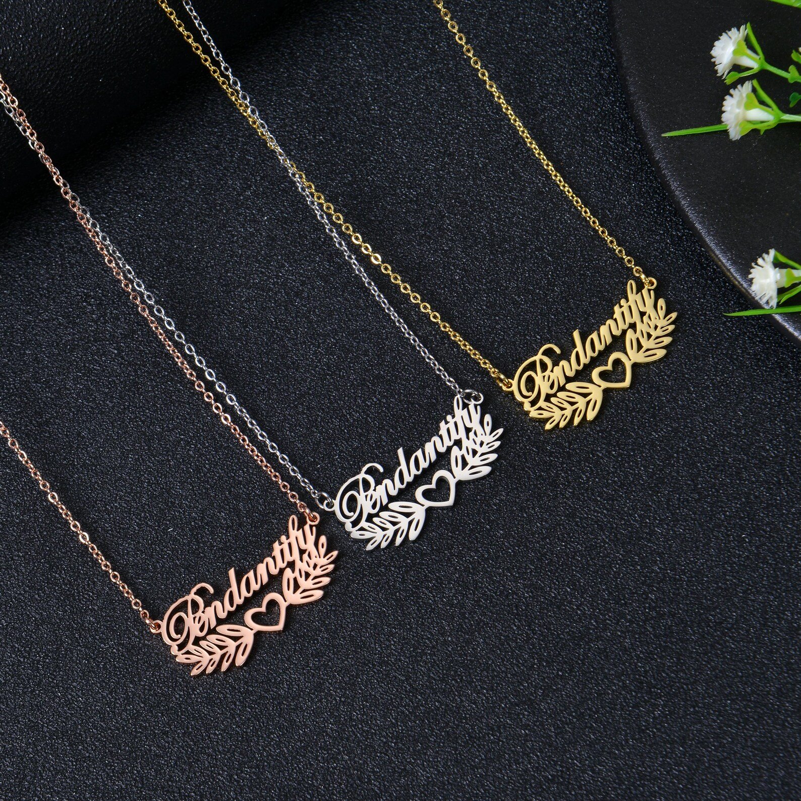 𝐂𝐮𝐬𝐭𝐨𝐦 𝐋𝐞𝐚𝐟 𝐇𝐞𝐚𝐫𝐭 𝐍𝐚𝐦𝐞 𝐍𝐞𝐜𝐤𝐥𝐚𝐜𝐞 🍃💖