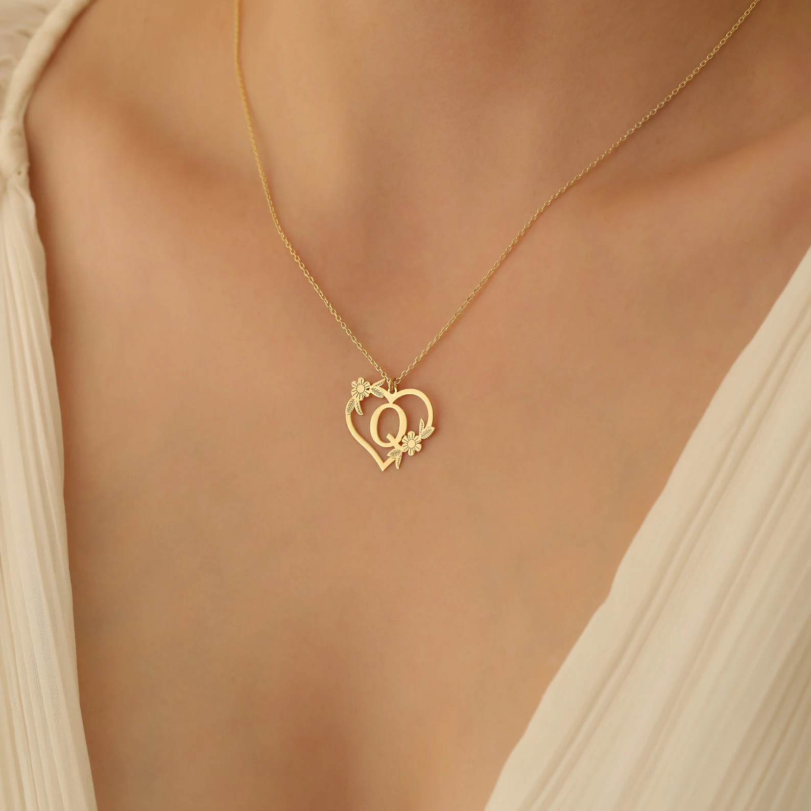 A beautiful blend of romance and nature! This delicate necklace features a heart pendant adorned with a floral design and a custom initial, creating a unique and heartfelt accessory. It’s a perfect way to celebrate love and beauty. ✨