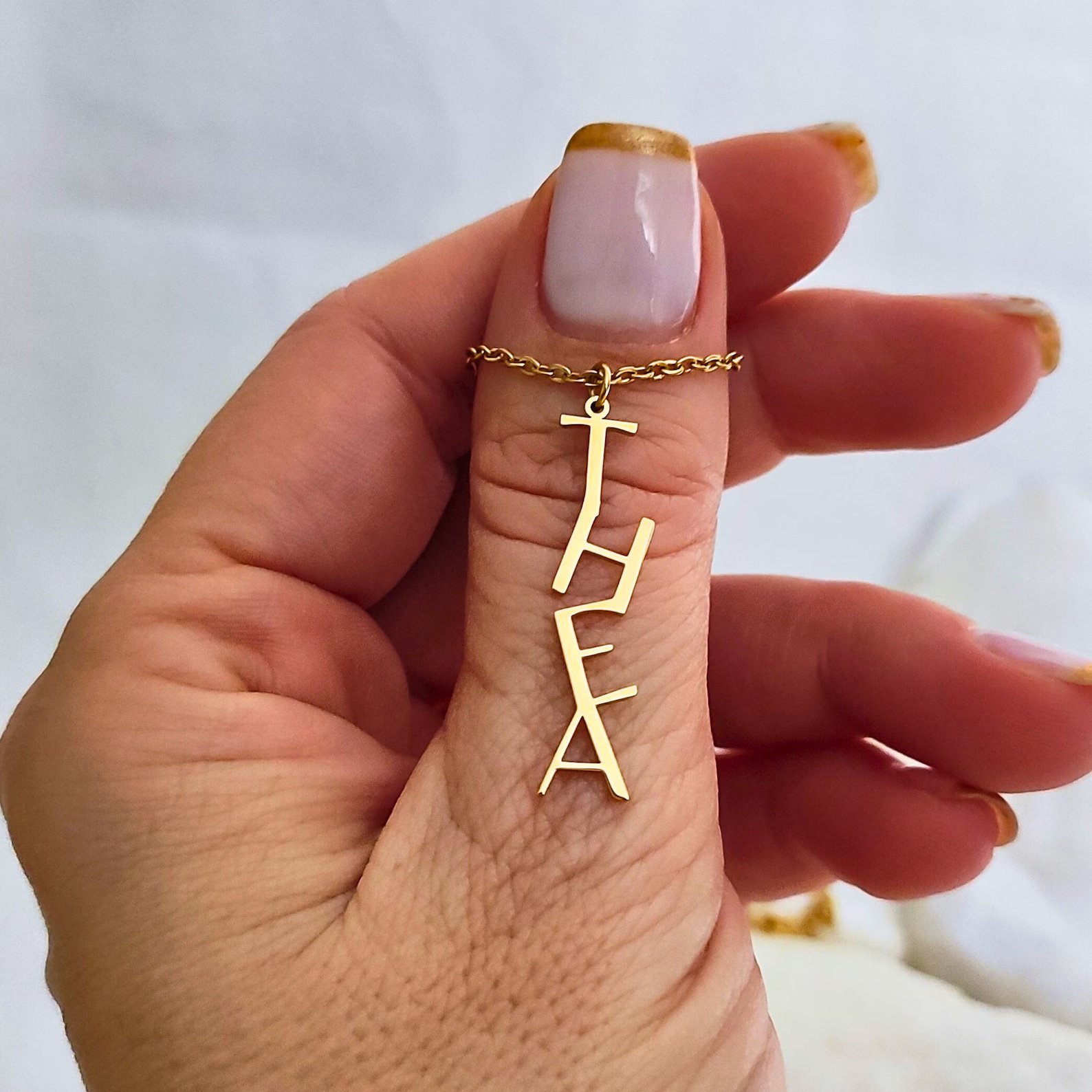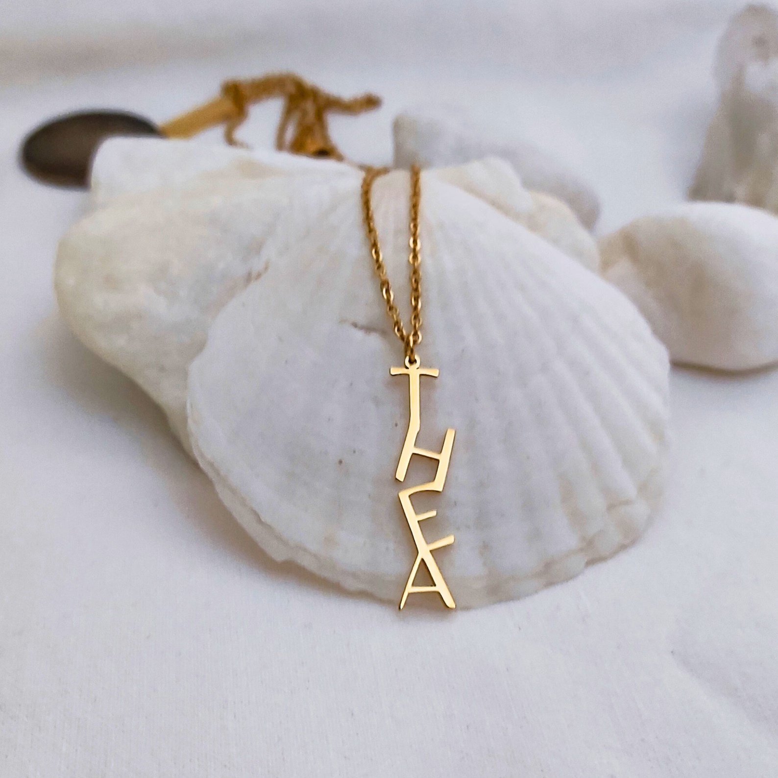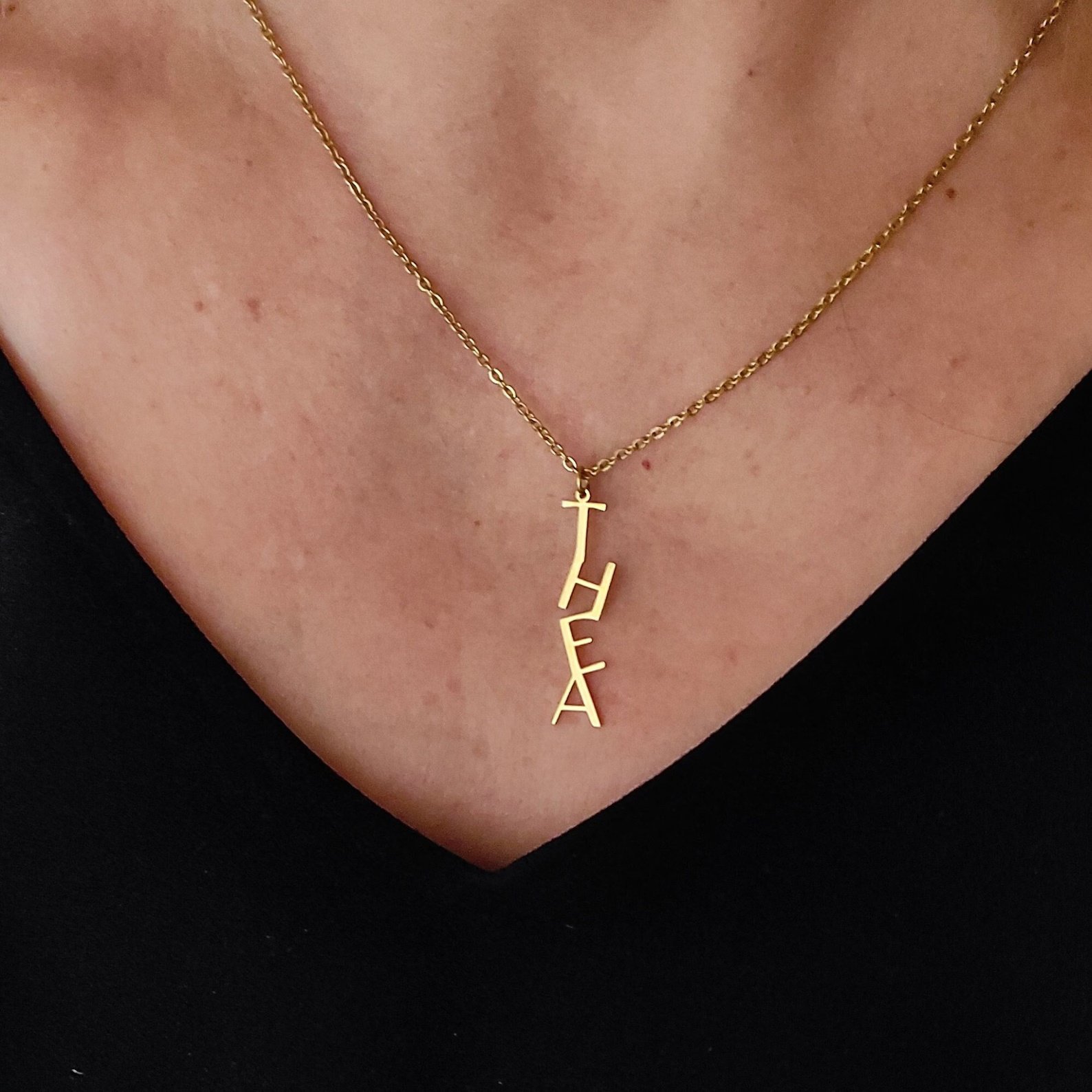 Elevate your personal style with a twist on a classic! This elegant necklace features your name in a sleek, vertical design, creating a modern and sophisticated accessory that’s perfect for a subtle statement. 💖